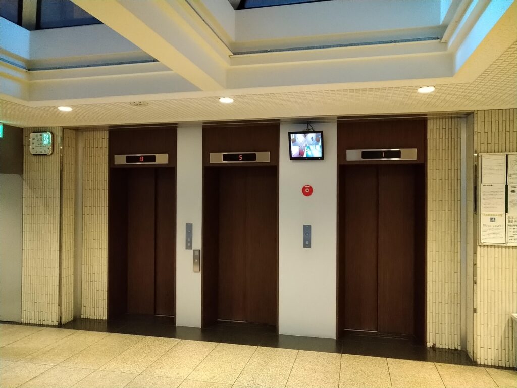 ③EV前 3基のエレベーターがあります(全て防犯カメラ付き)